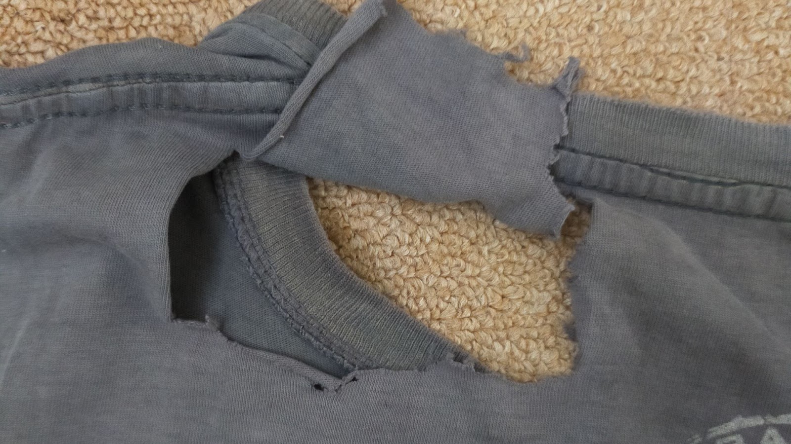 I accidentally ripped my old t-shirt the other day and so here's an idea to recycle it! Make a mask!